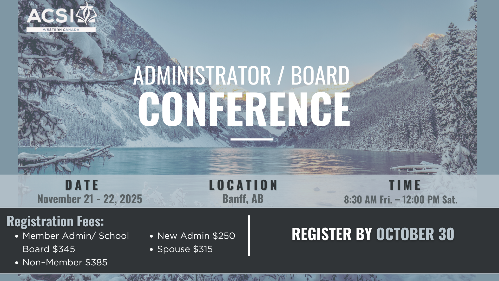 The ACSI Western Canada Administrator/Board Conference will be held at the Banff Park Lodge. By making your reservation here, you can take advantage of a special preferred rate! *Please note to utilize the preferred rate, your booking must be made by October 17th, 2025.